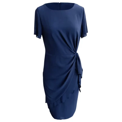 Elegant Maroon Midi Party Dress | Short Sleeve, Crew Neck, Solid Color | for Weddings & Office Events, Spring/Summer/Autumn Fashion | Formal Event Attire, Glossy Texture