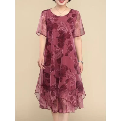 Spring And Summer New Elegant Fashion Scenic Print Pattern Casual Women'S Dress;
