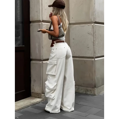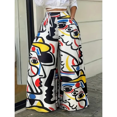 Stylish Graffiti Wide Leg Pocket Pants - Women's High Waist Pants for Spring & Fall