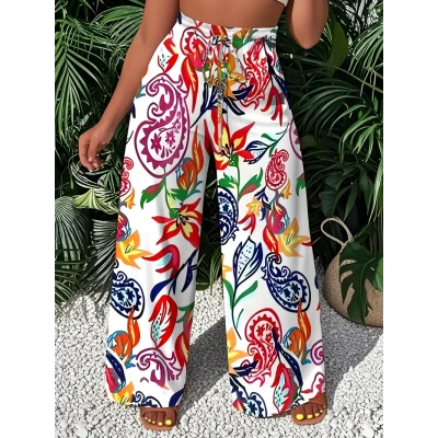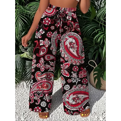 Women'S Ethnic Paisley Floral Print Wide Leg Vacation Casual Pants