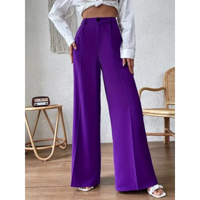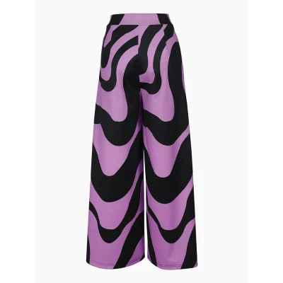 Purple & Black Abstract Printed Women's Elegant Wide-Leg Pants | High Waist, Loose Fit, Machine Washable, Summer Clothing