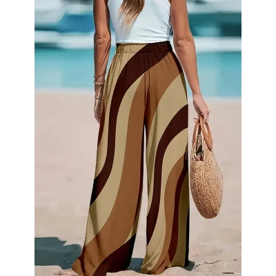 Women's Casual Wide-Leg Pants with Geometric Print - Relaxed Fit, Machine Washable