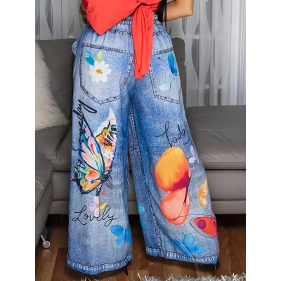 Women's Elegant Streetwear Straight-Leg Pants with Geometric Floral Print