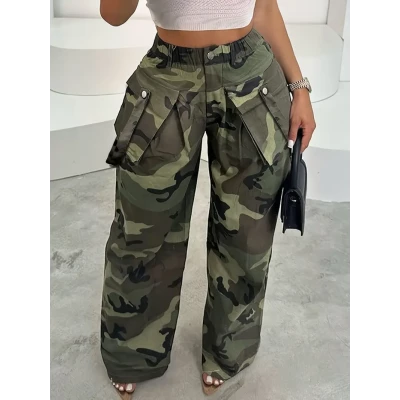 Women'S Camo Print Cargo Pants with Zipper Pockets, Casual Loose Fit Wide Leg Trousers for Casual Attire, High-Quality Cargo Pants