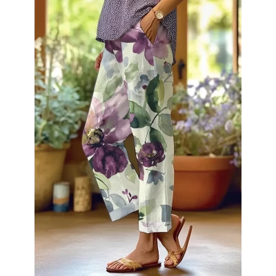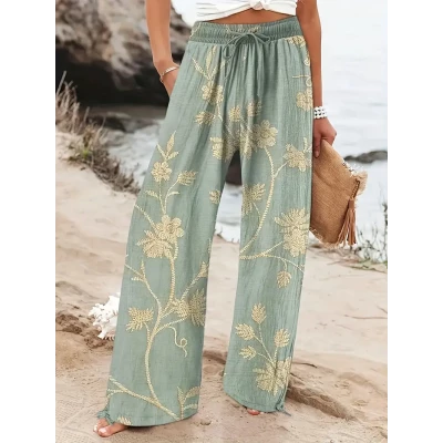 Women'S Vintage Floral Light Green Straight Leg Resort Style Printed Casual Pants