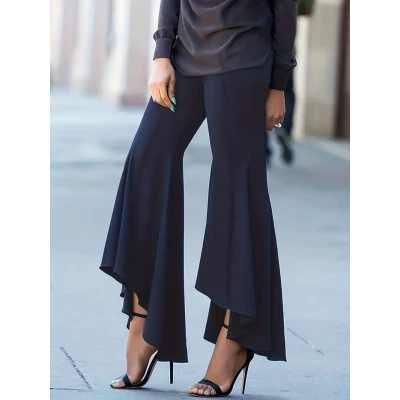 Stylish Wide Leg Pants - High Waist Ruffle Trim Loose Fit Pants for Spring & Summer