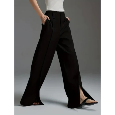 Wide Leg Solid Color Pants, Casual Loose Suit Pants For Spring & Summer, Women's Clothing With Split Hem
