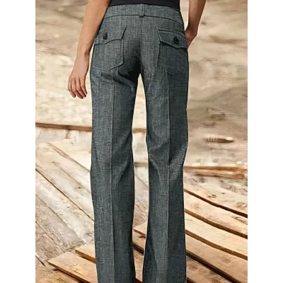 Solid Color Mid-Rise Straight Leg Pants - New Women's Casual Flap Pocket Button