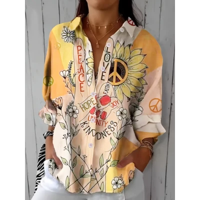 Print Button Front Shirt, Casual Long Sleeve Lapel Shirt, Women's Clothing