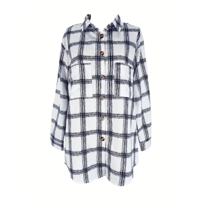 Stylish Casual Blue and White Plaid Print Long Sleeve Shirt with Pockets