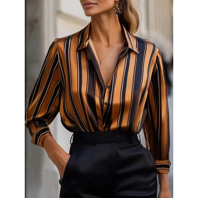 Elegant Special Women's Striped Shirt - Classic Collar Button-Up Blouse with Mustard