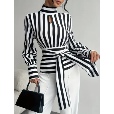 Elegant High Neck Long Sleeve Blouse