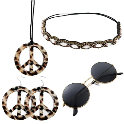 4pcs Leopard Peace Talisman Sets Earrings Necklace Headgear Glasses Set Masquerade Rave Party Decorations