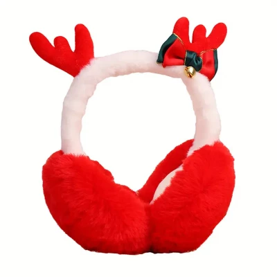Christmas Ear Muffs 3D Antlers Fuzzy Warm Earmuffs Cute Plush Ear Warmer for Women Girls
